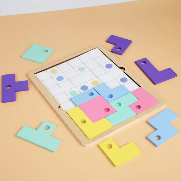 Wooden Dinosaur Solitaire Game Connect The Dots Memory Chess Multifunctional Puzzle Form the tiles to...