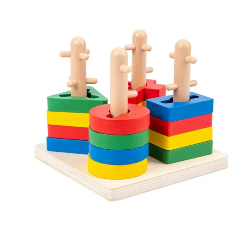 High-quality wooden toy set with durable construction for long-lasting use Features four columns with different...