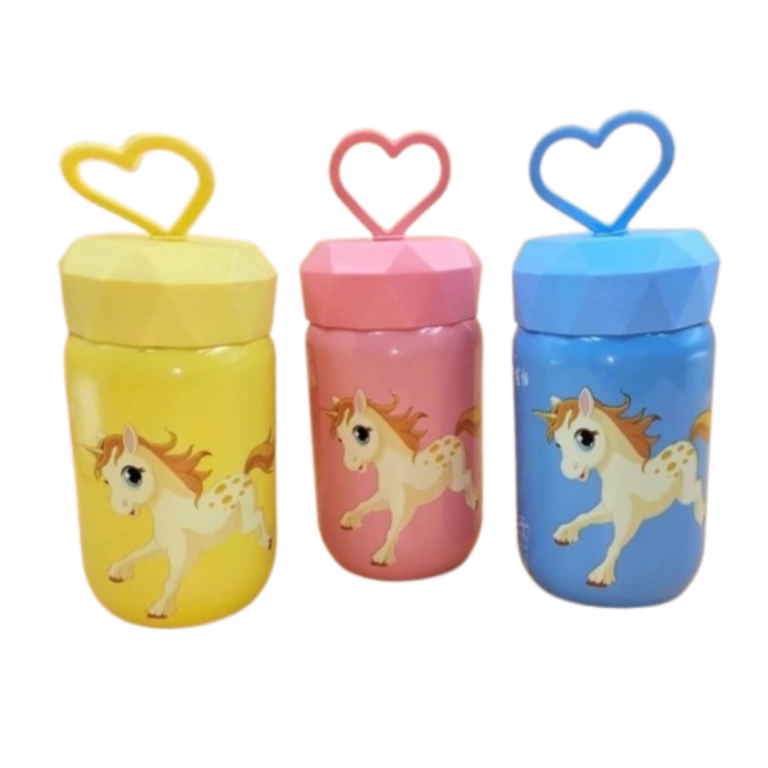 340 ml unicorn-themed glass water bottle. Features a silicone protective cover for added grip. Designed...