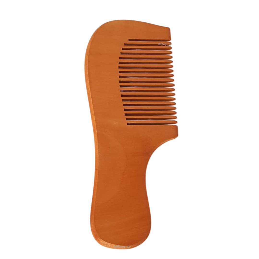 Handcrafted wooden comb designed with smooth finish and rounded handle for comfortable grip and styling...