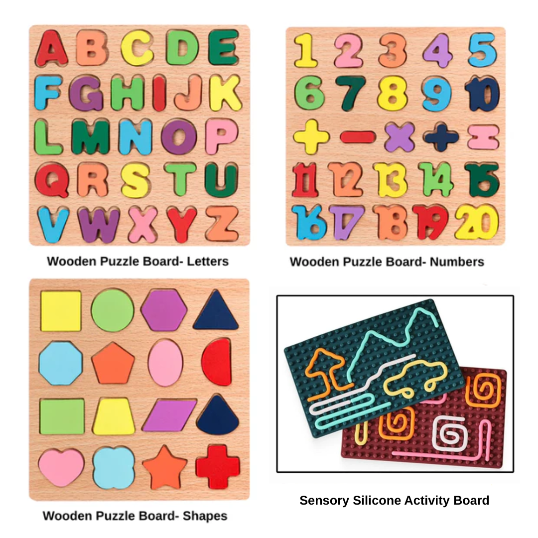 Wooden Puzzle Board - Letters Wooden Puzzle Board- Numbers Wooden Puzzle Board- Shapes Sensory Silicone...