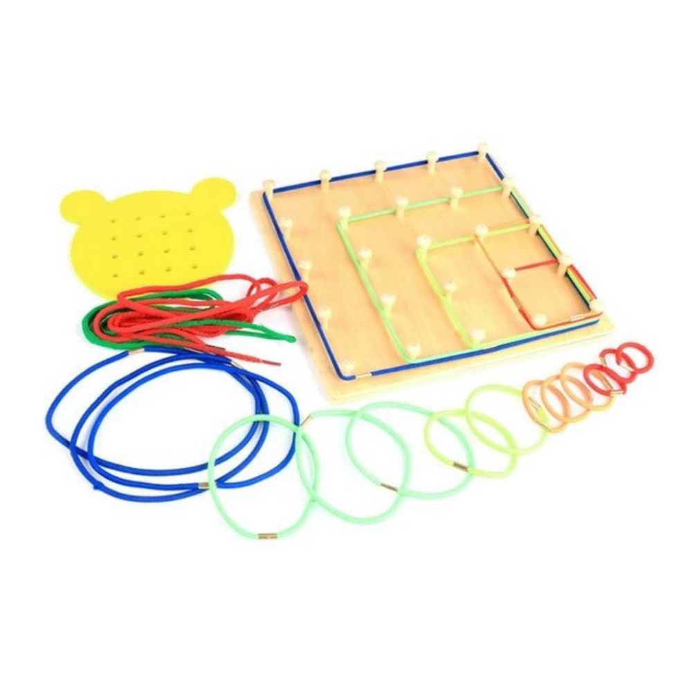 Wooden Elastic Board | Activity Toy| Montessori Game| Early Educational Toys |Toys| Games| Lacing Board| Learning Toy | GEO BOARD