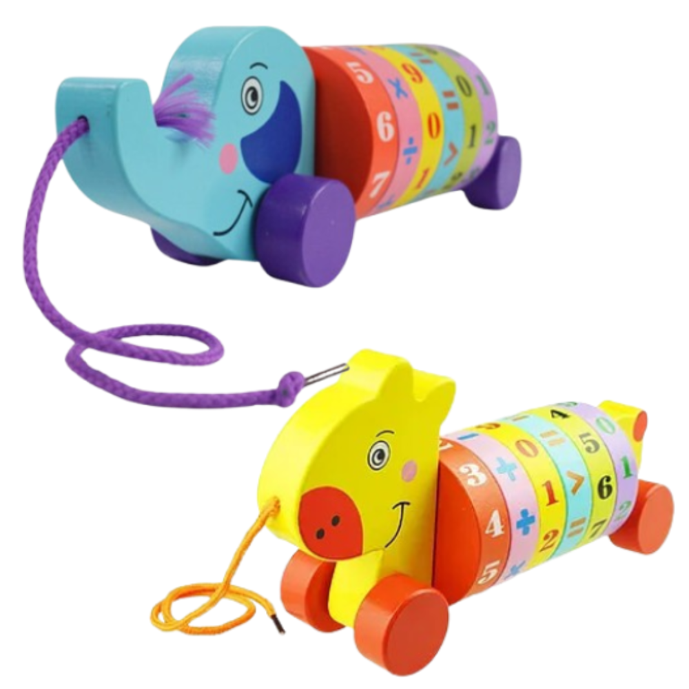 Animal Digital Trailer | Wooden Pull Along Animal Calculator Toy | Random theme