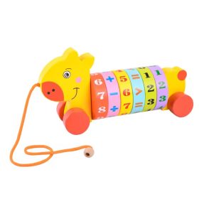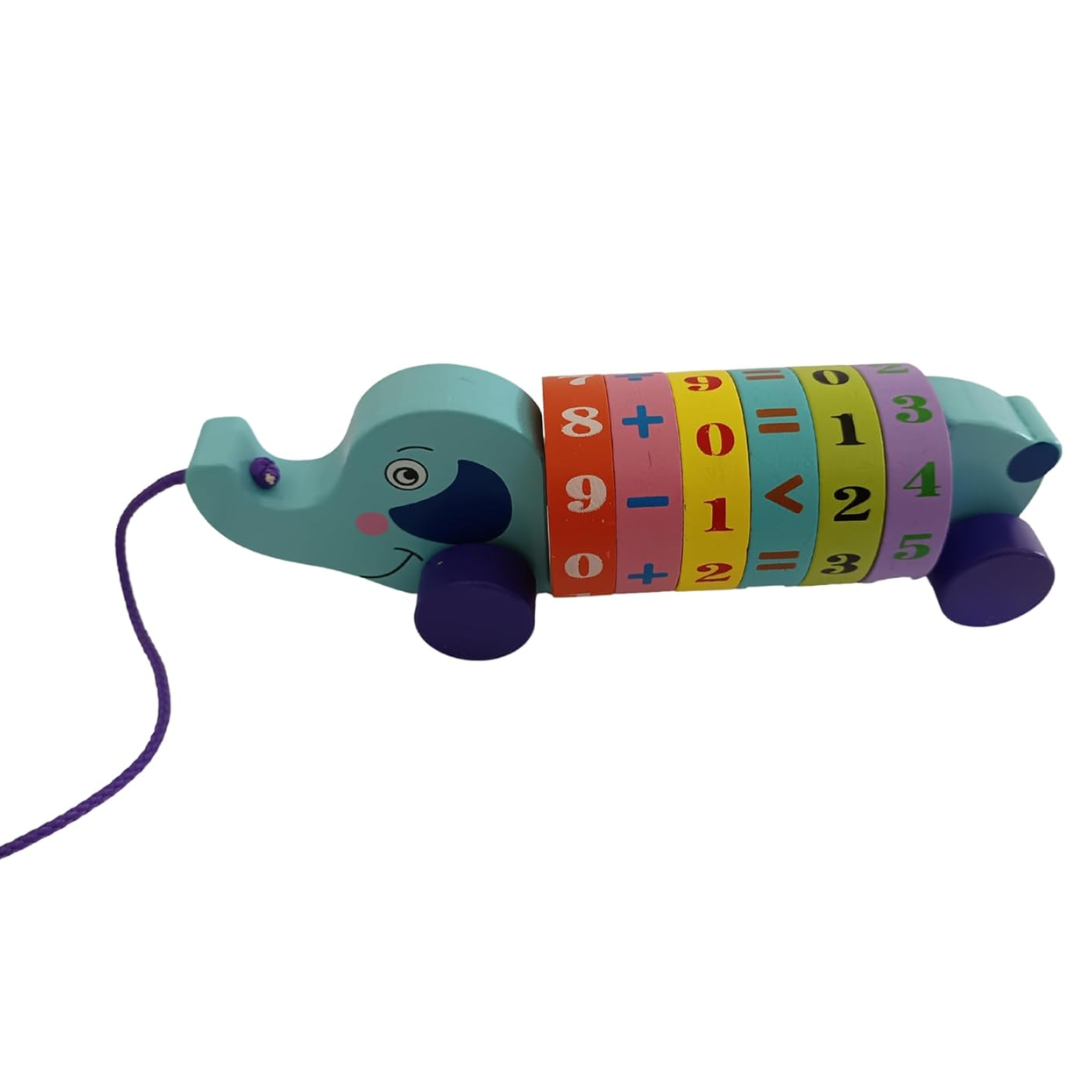 - Colourful wooden pull-along toy featuring rotating number discs that help children learn basic mathematics and counting