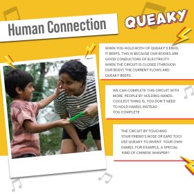 - It works on the principle of a closed circuit. The moment Queaky senses that the circuit is closed meaning there is a loop for the current to flow, it gives out a shout. The tone is based on how much resistance is present in the circuit.