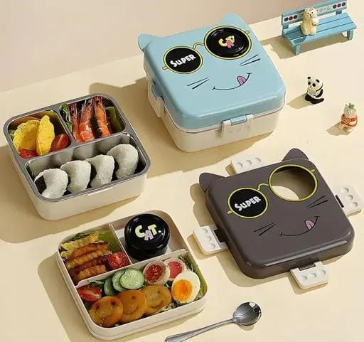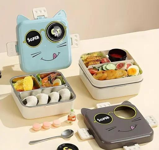 Cat Shaped Stainless Steel Lunch Box | Large Capacity and Unique Design for Healthy Food Preservation Leak-Free.