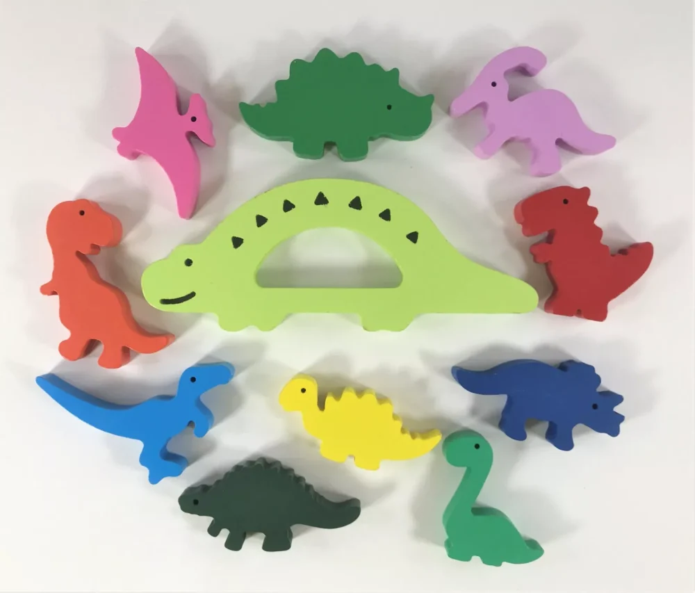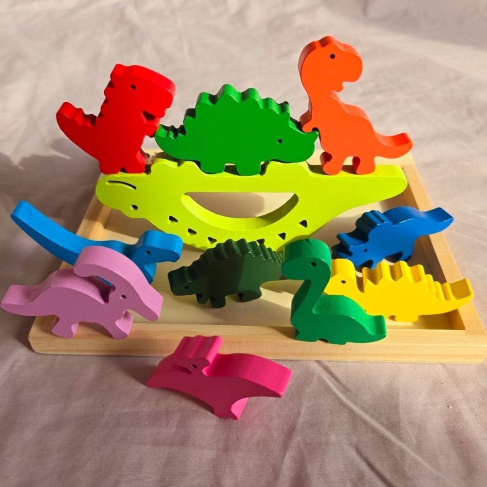 - This dinosaur stacking toy can help develop children’s concentration, hand & eye coordination, and fine motor skills. Through stacking these dinosaurs and get balancing skills will help children build independent thinking, patience, and persistence. A great educational toy for classroom, daycare or home-school.