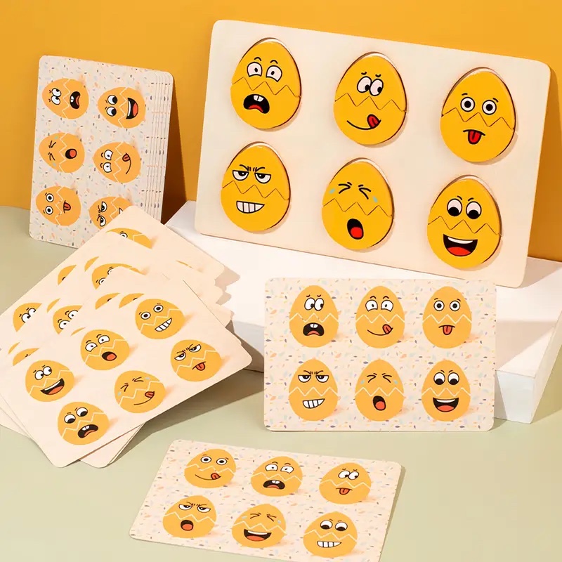- 【Material】: Wooden Expressions Eggs Puzzle is made of wooden material, learning emotional expression and emotional cognition and developing observation and cognitive ability.