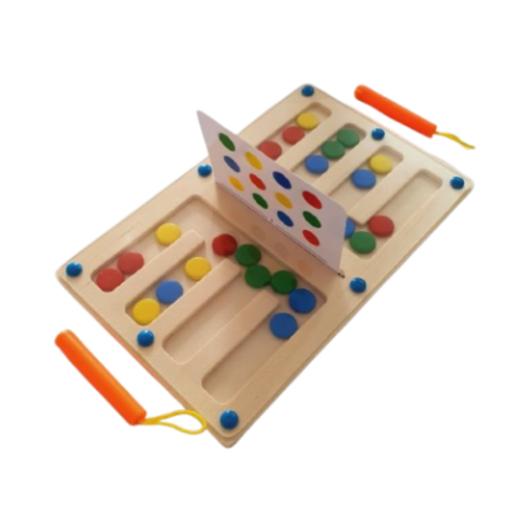 - A colorful and exciting magnetic wooden board game that helps kids improve their observation, memory, and color recognition skills!
