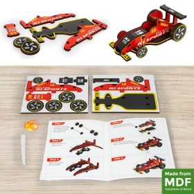 - Crafted from durable MDF wood pieces that fit together perfectly to create a sturdy and playable race car model