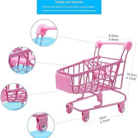 Mini Shopping Cart Small Supermarket Cart Handcart Shopping Utility Cart Metal Shopping Cart Mode Desk Storage Toys Dolls Shopping Carts(Candy Color)