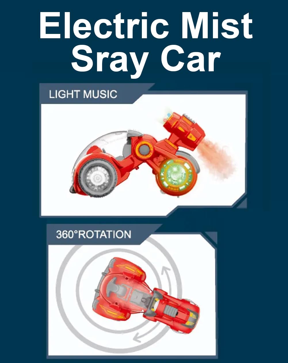 . 360 Degree Rotating Mist Spraying Lifting Deformation Electric Car Toy for Kids with Light and Music – Futuristic Design Car Toy.
