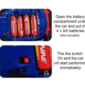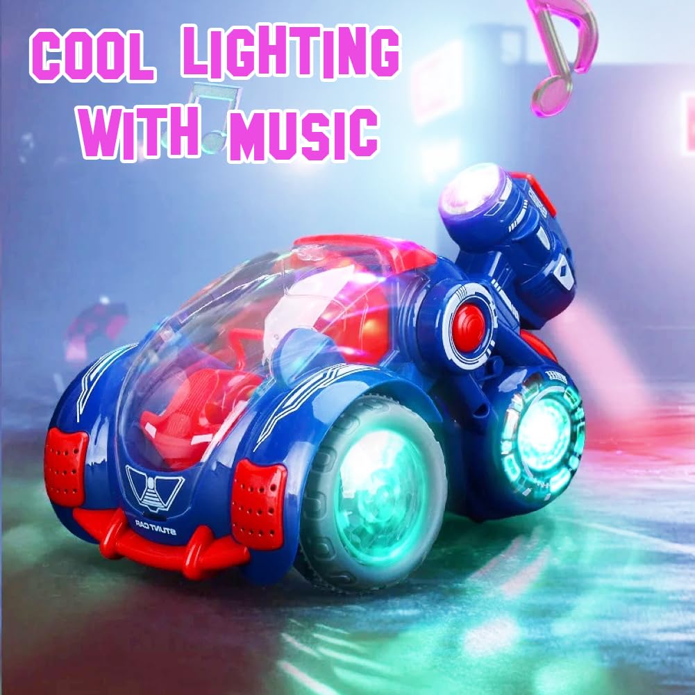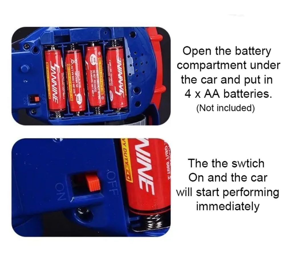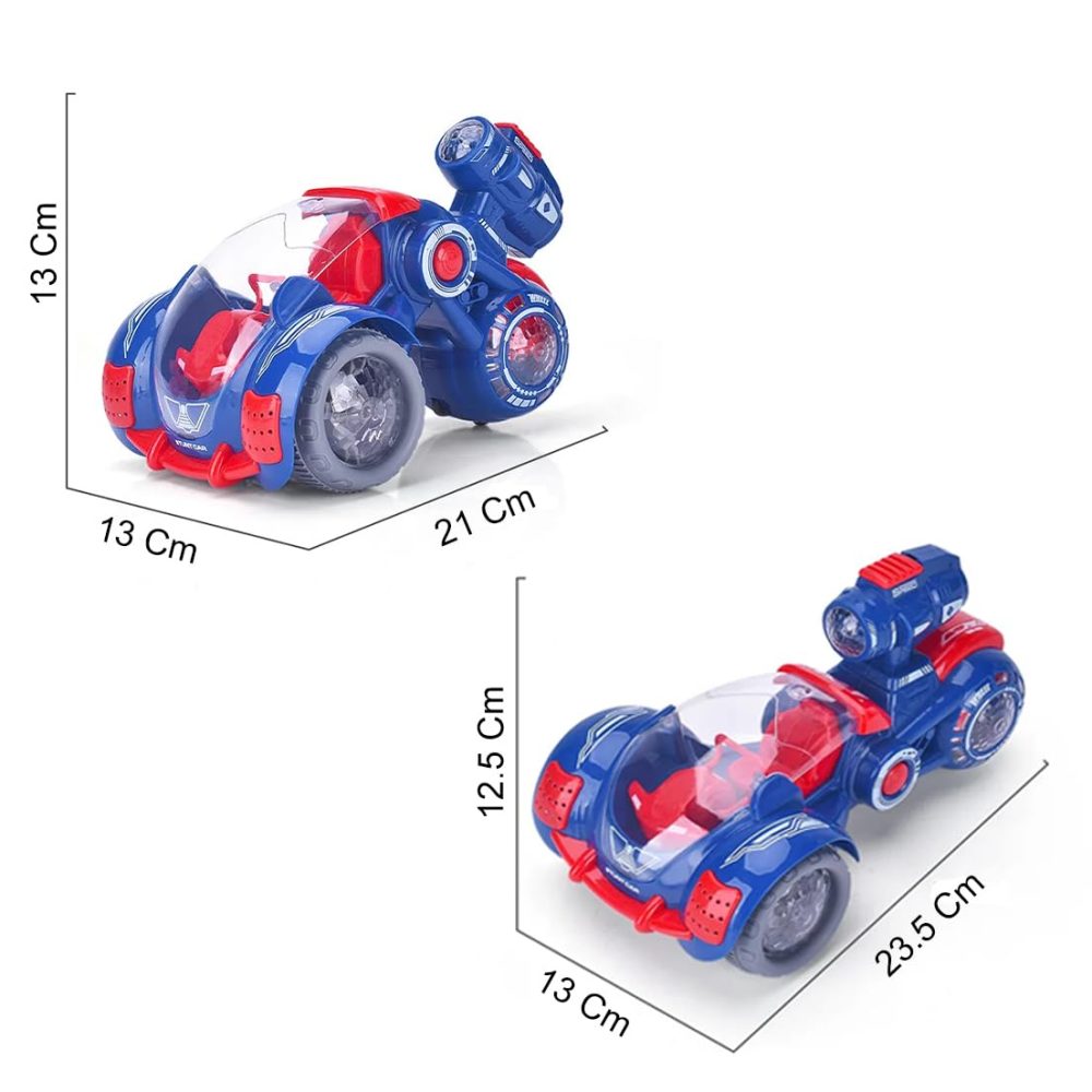 ✨ ABOUT:- This electric car rotates 360° and has lifting deformation action accompanied by mesmerizing lights and music. It also has mist spraying action which gives the effect of exhaust smoke to the car while running.