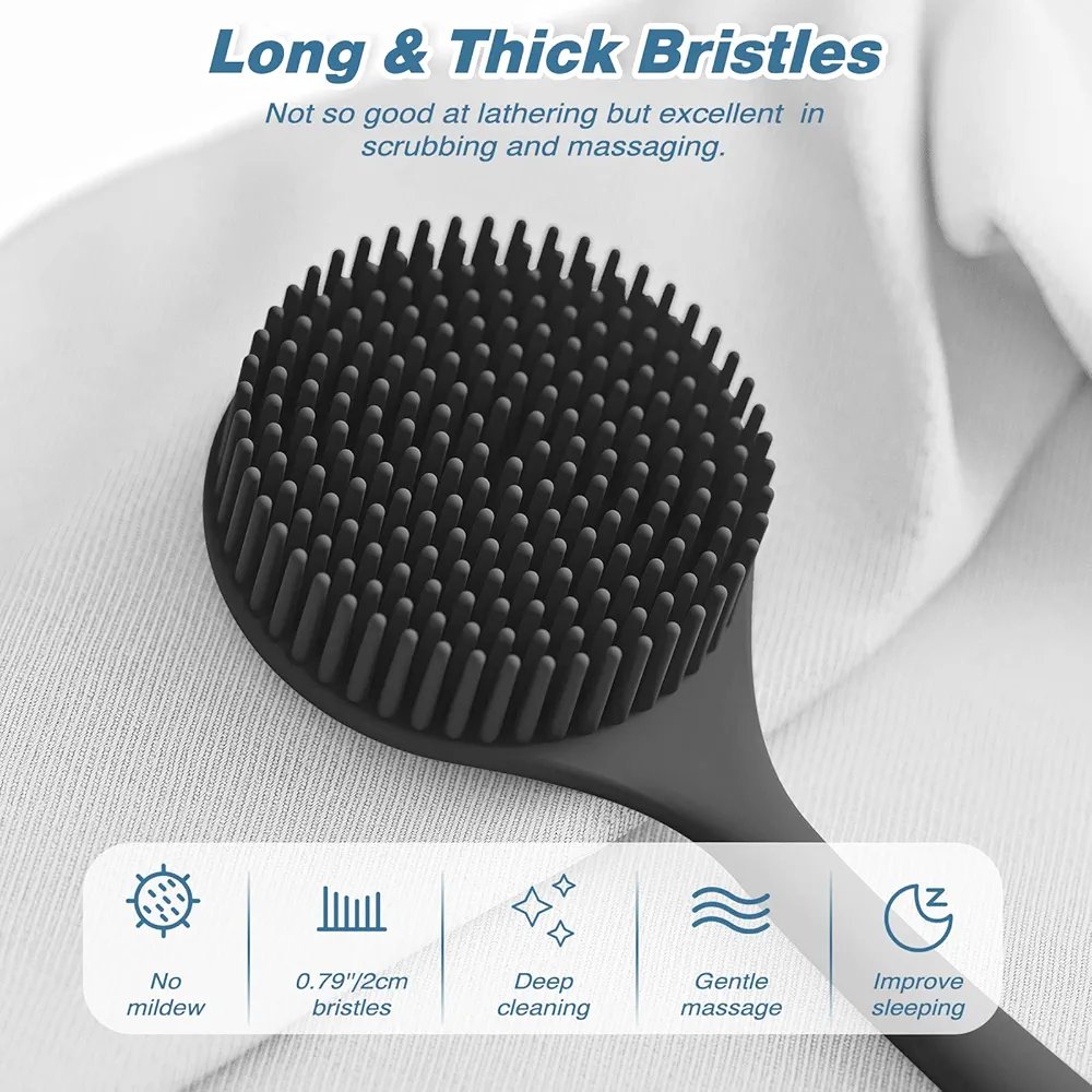 Silicone Back Scrubber for Shower, Super Foaming Body Brush with Long Handle