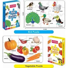 - BOX CONTENTS: Tini Mini Puzzle comes with 4 Educational sets of 20 Piece Puzzle like Animals, Birds, Vegetables, Fruits.