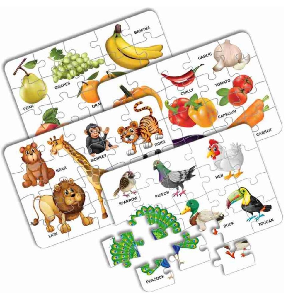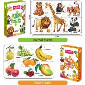 - BOX CONTENTS: Tini Mini Puzzle comes with 4 Educational sets of 20 Piece Puzzle like Animals, Birds, Vegetables, Fruits.