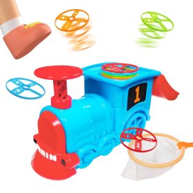 Train Flying Disc Launcher Toy for Kids and Adults with 8 Discs, 2 Catch Nets – Step-On Fly and Catch Flying Saucer Set – Indoor Outdoor Play with Family and Friends – Multicolor