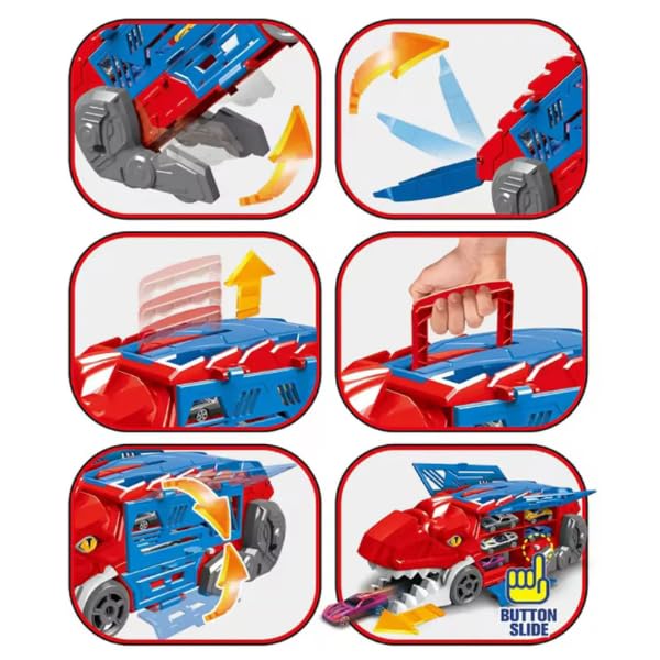 - 2-in-1 Dinosaur Car Storage & Launcher Playset – Unique Dinosaur design doubles as a toy vehicle garage and a car launcher, holding up to multiple mini cars while providing thrilling launch action for endless racing fun.