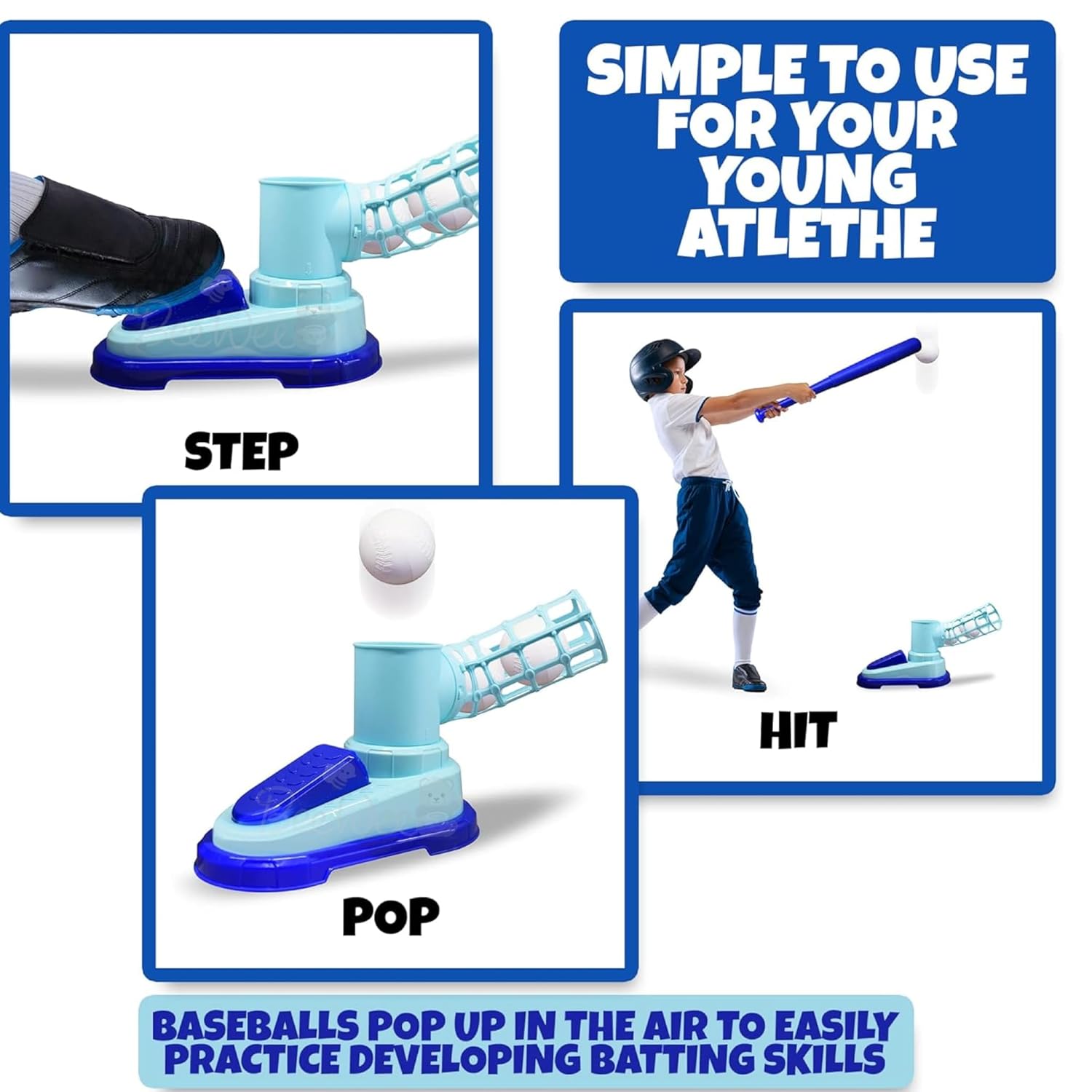 - Using the kids pitching machine is easy. Just load the 3 balls into the pitching unit, get in position, step on the pedal to launch a ball into the air, and swing away. The straightforward operation makes it great for young athletes with a passion for the national pastime.