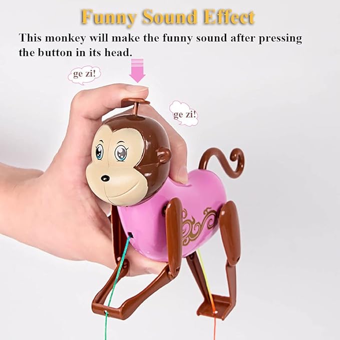 - 1?Baby Fun Toy: Pull the string to make the monkey to move forward, the greater the strength, the faster the monkey will move, encouraging your baby to do exercises. A good toy is needed to keep your baby entertained for hours.