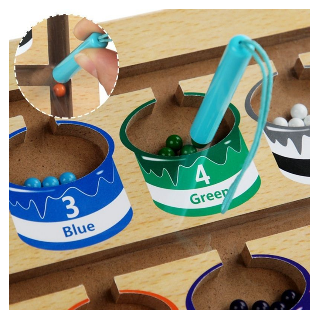 Magnetic color matching:Teach kids their colors with this educational puzzle,guiding metal marbles through a colorful maze. Interactive toy:Wooden board with a magnetic peg.Simple and easy for children to use.Portable and fun to play when traveling as well. Hands on intellect:A creative wooden toy board that helps with hand-eye coordination while enhancing basic motor skills.The concept of grasping and moving the peg will foster a more visual and sensory relationship with colors and problem solving. Fresh colors:Sturdy wooden construction with fresh gender neutral colors,which makes it a perfect toy