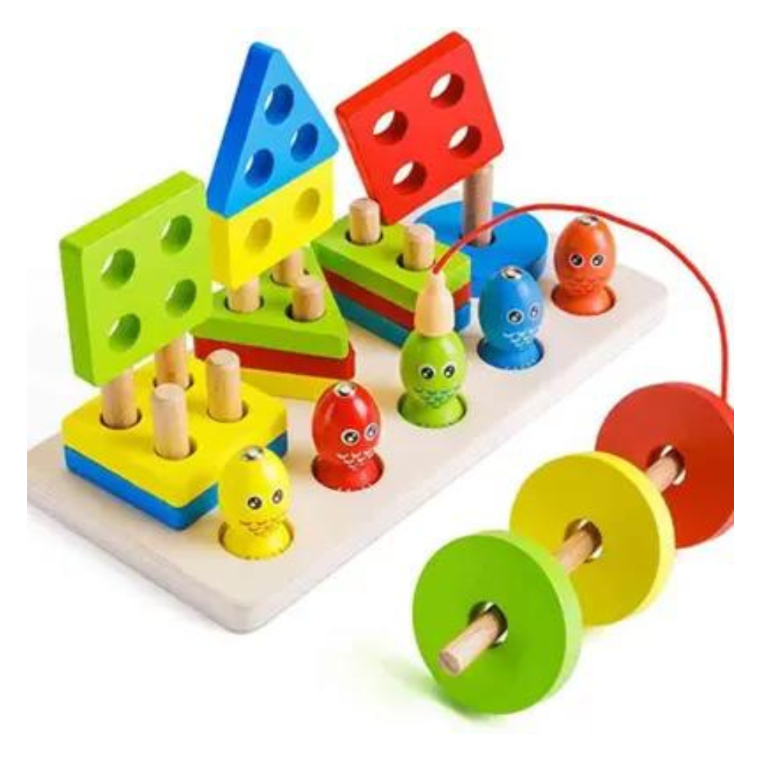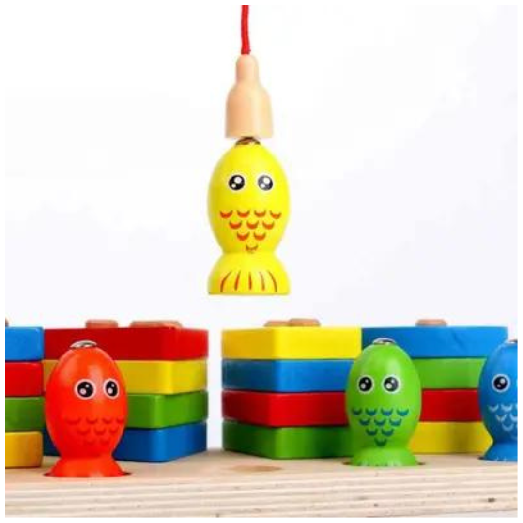 - HELPS IN SKILL DEVELOPMENT: Designed to develop kid’s intelligence, improve children’s hand-eye coordination, creative ability, and logical combination.; PACKAGE INCLUDED: Wooden blocks puzzle toy includes a wooden peg, 1pcs fishing rods,16pcs Geometric blocks, and 5pcs colorful fishes.
