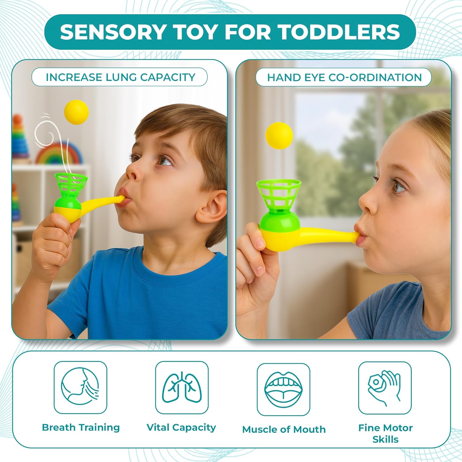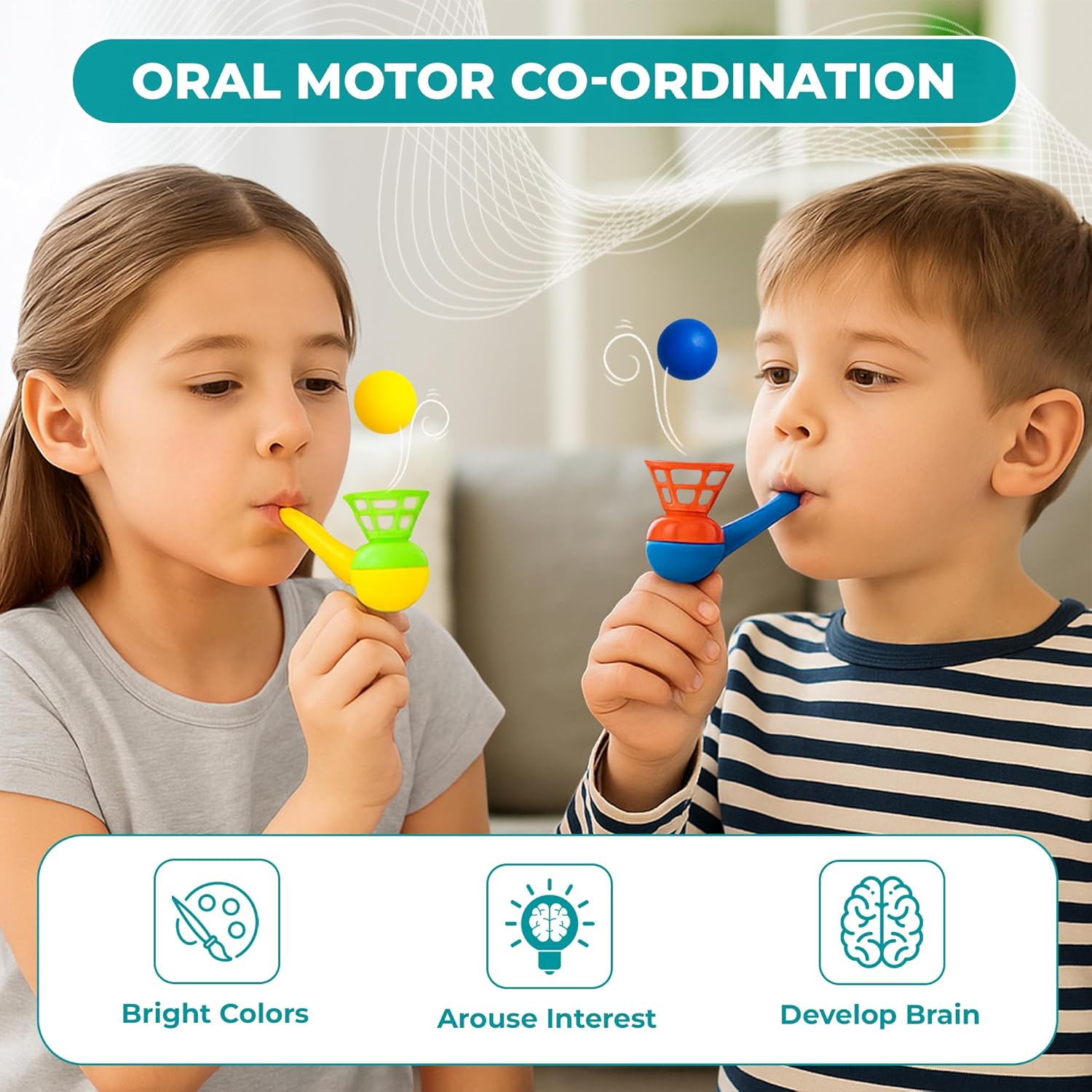 - Magic blow pipe floating ball game for all ages.