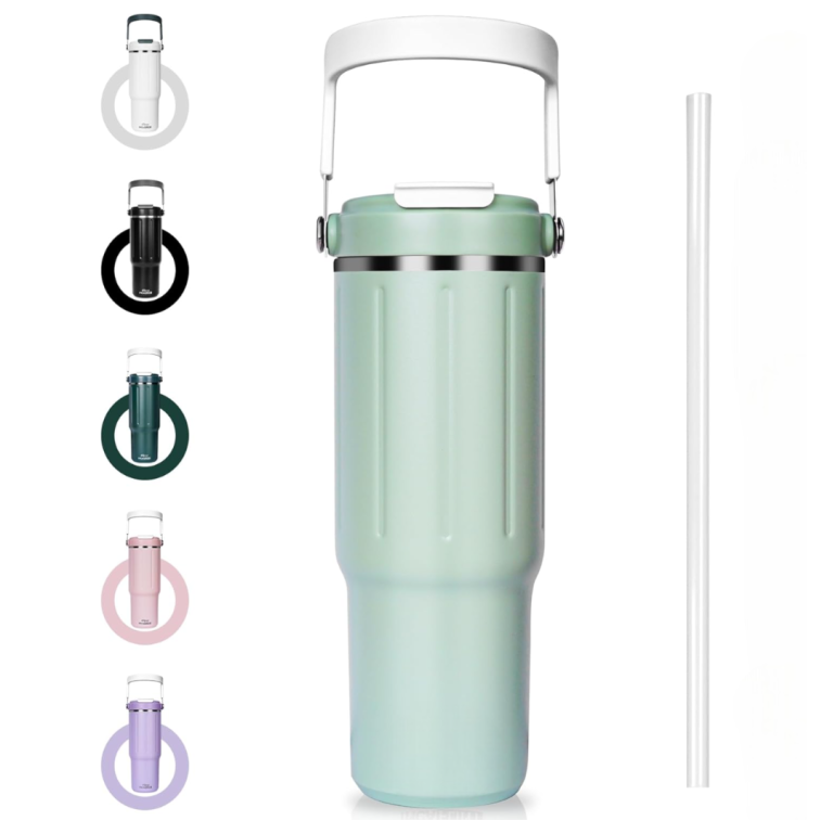 - Tumbler with Handle and Straw crafted with double-walled stainless steel, this tumbler keeps your drinks hot or cold for extended periods, providing a reliable and durable drinking experience