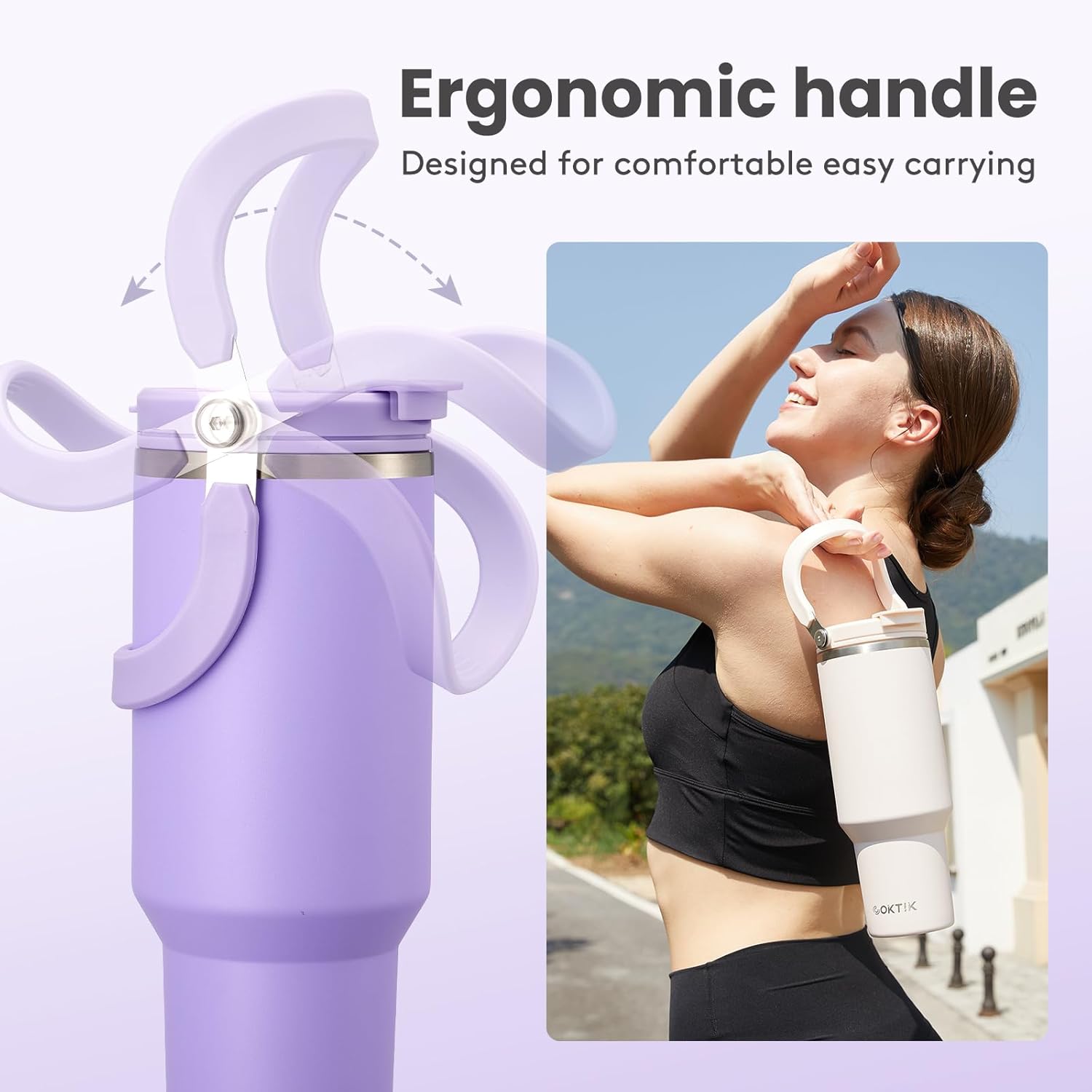 - Our tumbler with handle features a unique 2-IN-1 lid design, which allows you to suck or sip as you wish. Built-in access straw allows for quick and easy drinking; our flip lid is perfect for sipping hot or cold beverages.