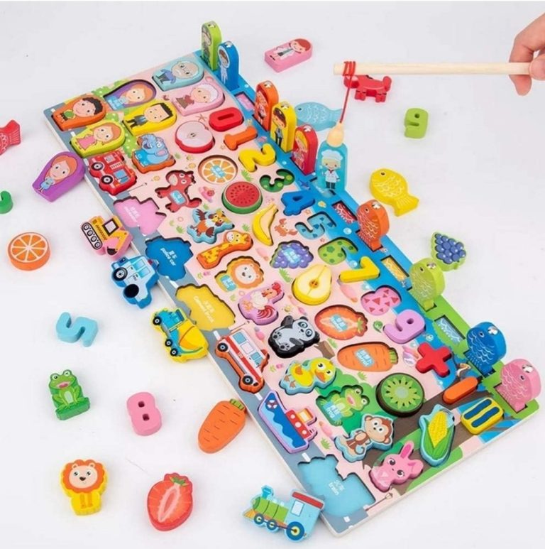 - Kids can count numbers, sort and arrange fruits, vehicles, animal and do fishing by collecting the fish and characters that have magnet on the top.