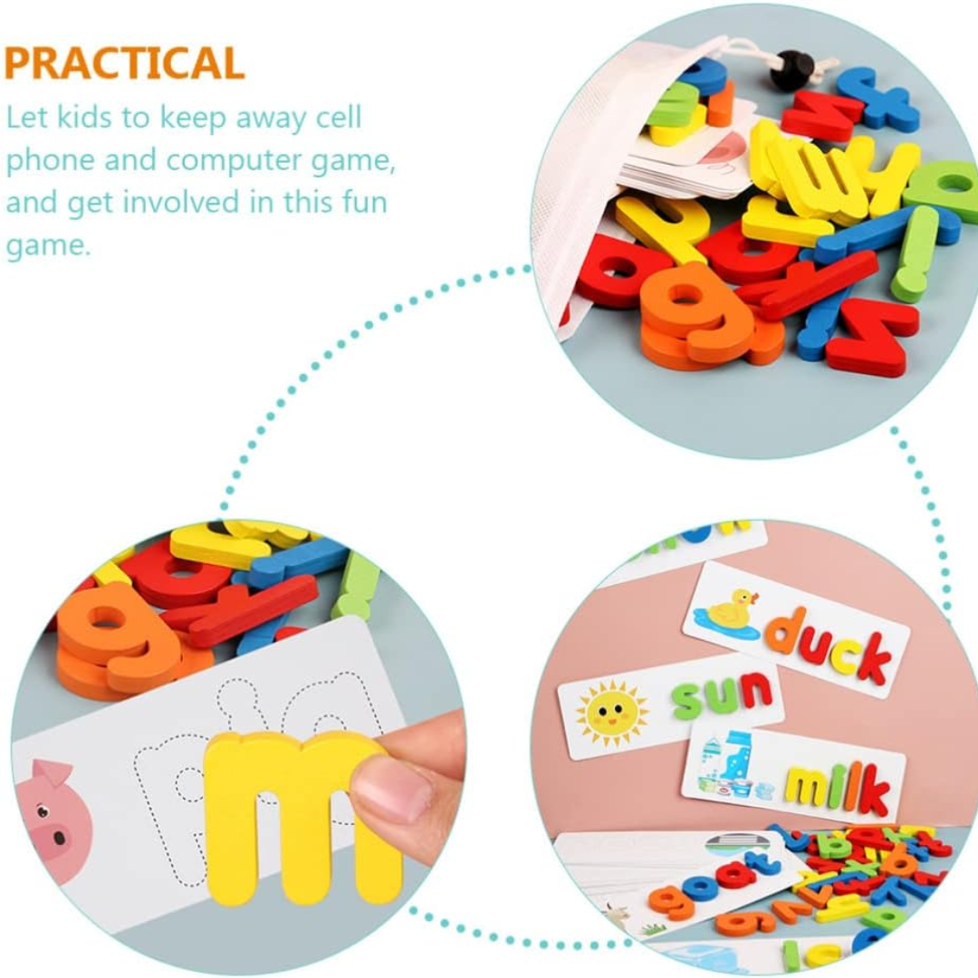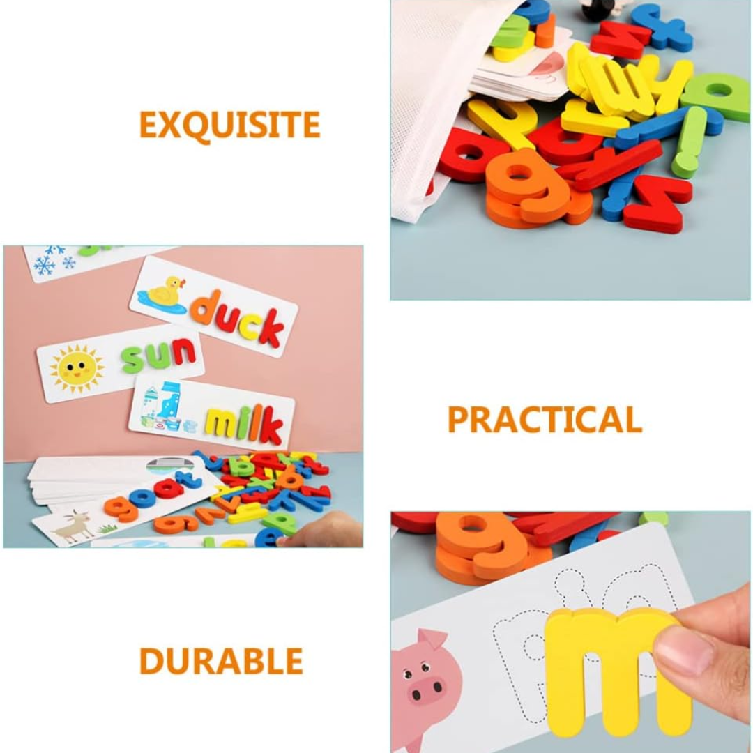 This wooden spelling game is the perfect way to help your child learn the English alphabet! Made with 26 English letters, this early educational cognitive toy is perfect for teaching your little one the basics of spelling.